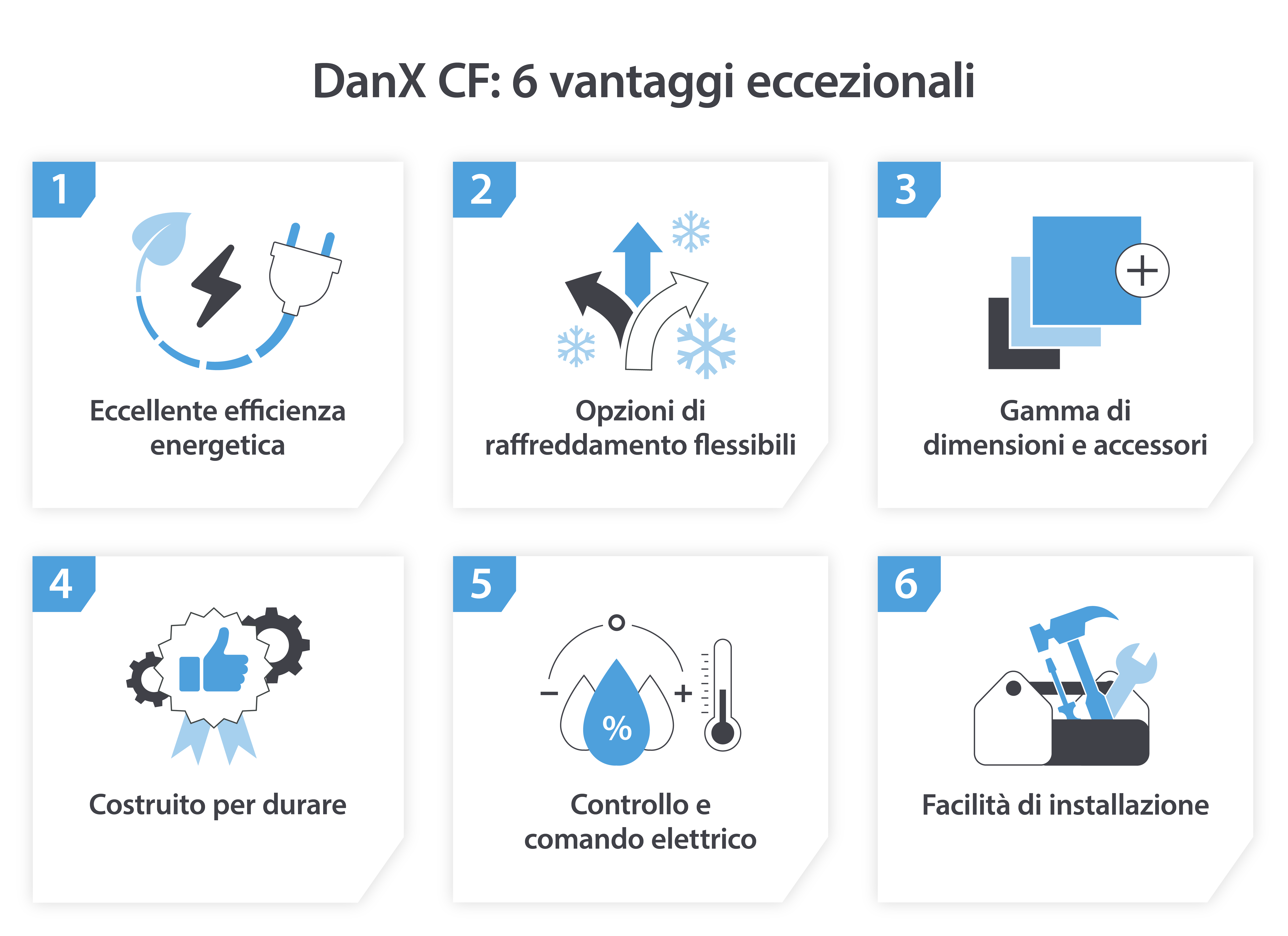 Al fine di dimostrare le capacità della nostra nuova unità di trattamento dell'aria DanX CF, abbiamo messo a fuoco 6 delle caratteristiche principali che dovresti conoscere: