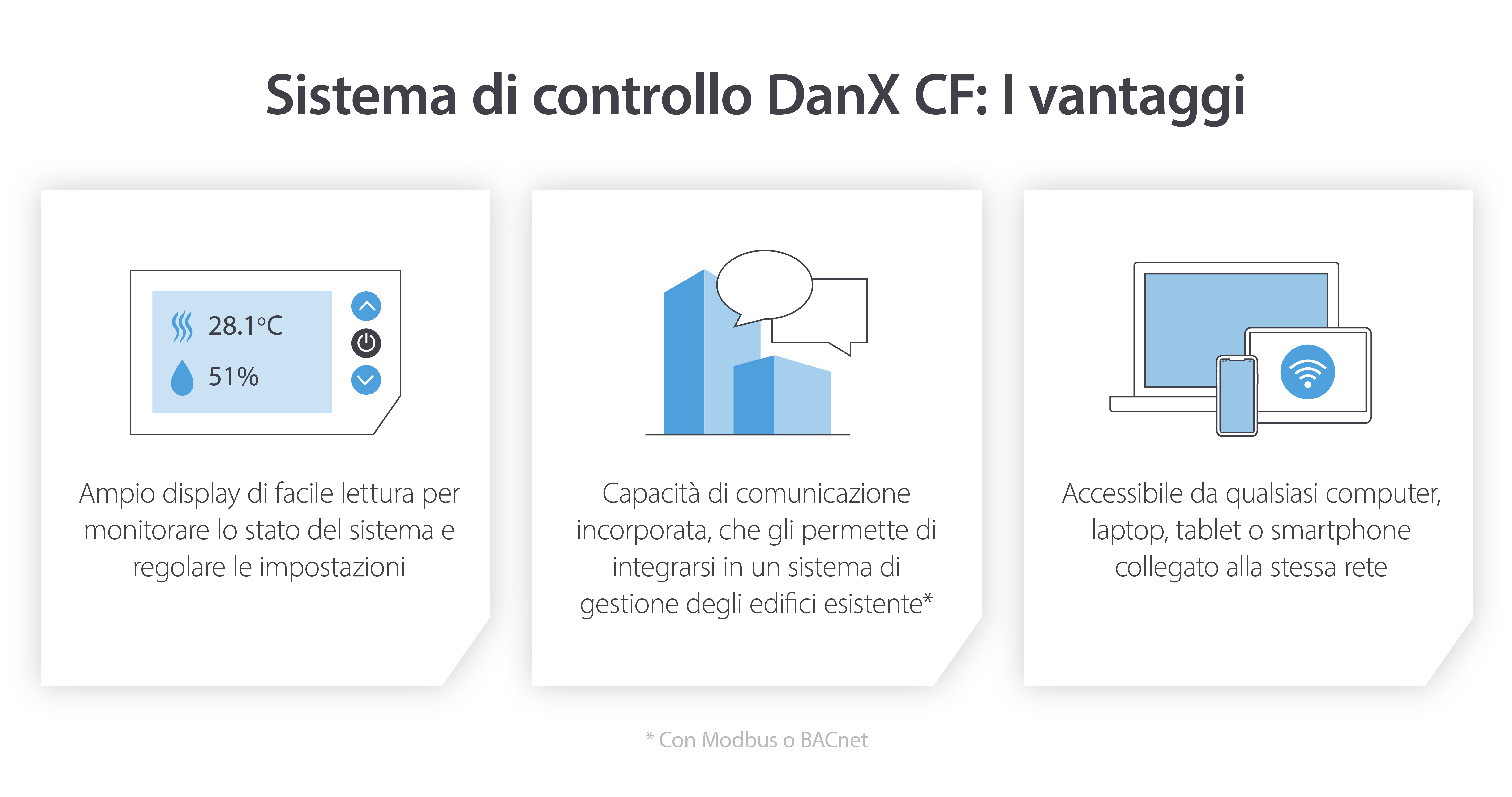 Tutte le soluzioni DanX CF sono fornite con un sistema di controllo, che porta la gestione del controllo del clima ad un livello completamente nuovo.
