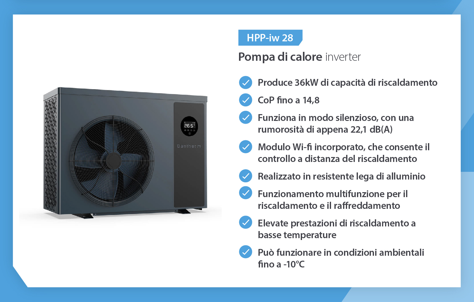Oltre ai vantaggi sopra descritti, Dantherm predilige la tecnologia delle pompe di calore per piscine perché: