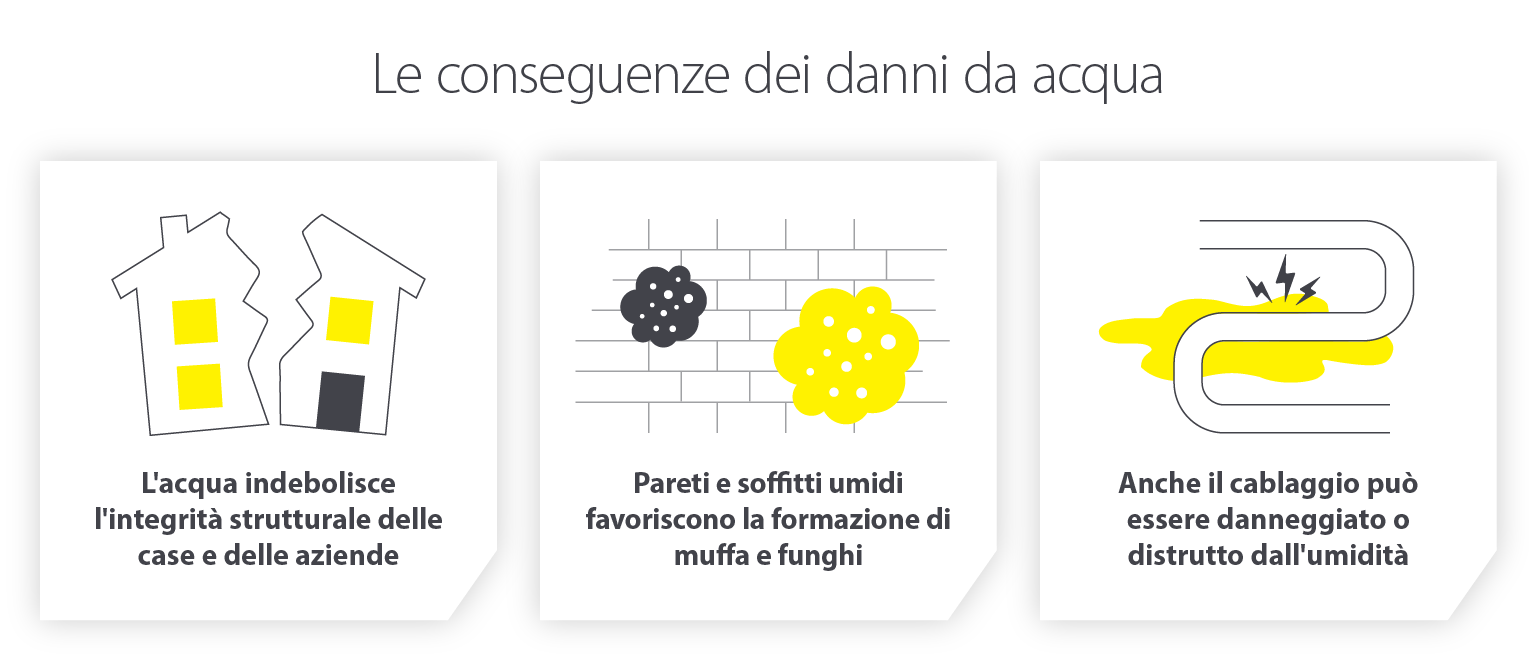 Oltre a impregnare materiali come i pavimenti in legno o l'isolamento interstiziale, la presenza di acqua può creare condizioni di vita sgradevoli, erodere le strutture e deteriorare l'integrità e la sicurezza di un immobile dall'interno.