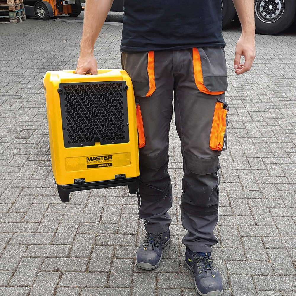 Il DHP 20 fa parte della gamma dei deumidificatori professionali portatili; è deumidificatore piccolo e leggero in un robusto involucro rotostampato progettato per l'uso professionale in condizioni di lavoro difficili. Il prodotto, facile da maneggiare, è dotato di una pompa dell'acqua integrata e offre un'asciugatura