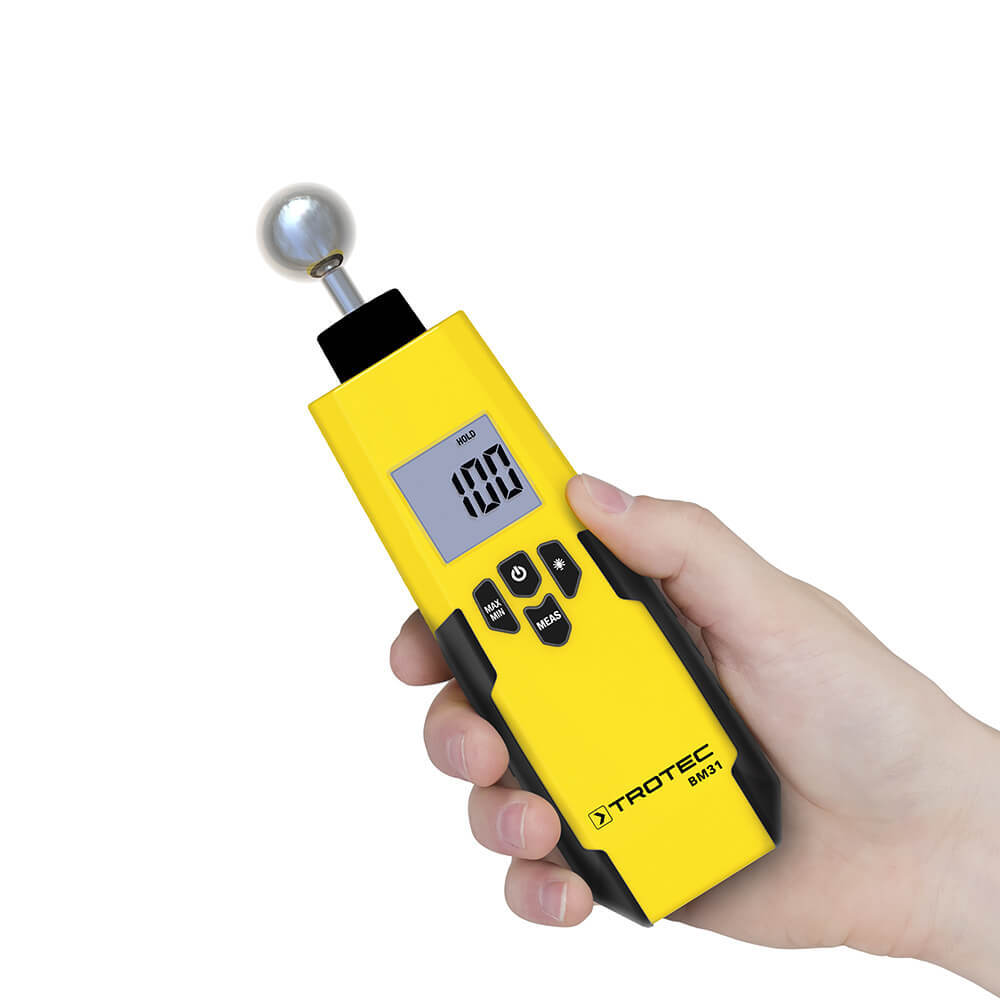 Con il BM31 non è soltanto possibile avere una indicazione veloce dei valori dell’umidità dei più diversi materiali vicino alla superficie, ma esso è anche particolarmente adatto al controllo preliminare della maturità tecnica dei materiali da costruzione in caso di misurazioni CM.