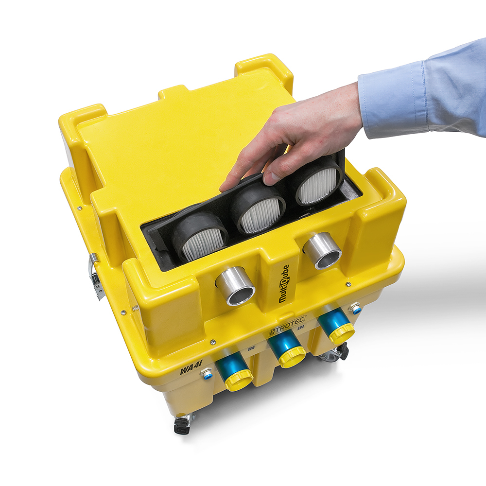 Il separatore d'acqua WA 4i per il sistema modulare MultiQube per l'essiccazione degli isolanti è dotato di un sistema di microfiltri integrato che presenta un vano filtro a chiusura magnetica per un facile posizionamento della cartuccia del microfiltro. Con un elemento filtrante a tre pieghe, è una soluzione all-in-one con stadi di filtraggio pre-HEPA in un unico dispositivo, che garantisce un flusso ottimale e un'efficienza di configurazione. Perfetto per l'asciugatura isolante di superfici fino a 40 m², il compatto WA 4i offre caratteristiche pratiche come gli attacchi rapidi TTKwic, il supporto per i cavi e il drenaggio dell'acqua residua. Con un peso di soli sei chilogrammi, si integra perfettamente con i moduli Trotec MultiQube come il VE 4, pur rimanendo compatibile con i modelli precedenti.