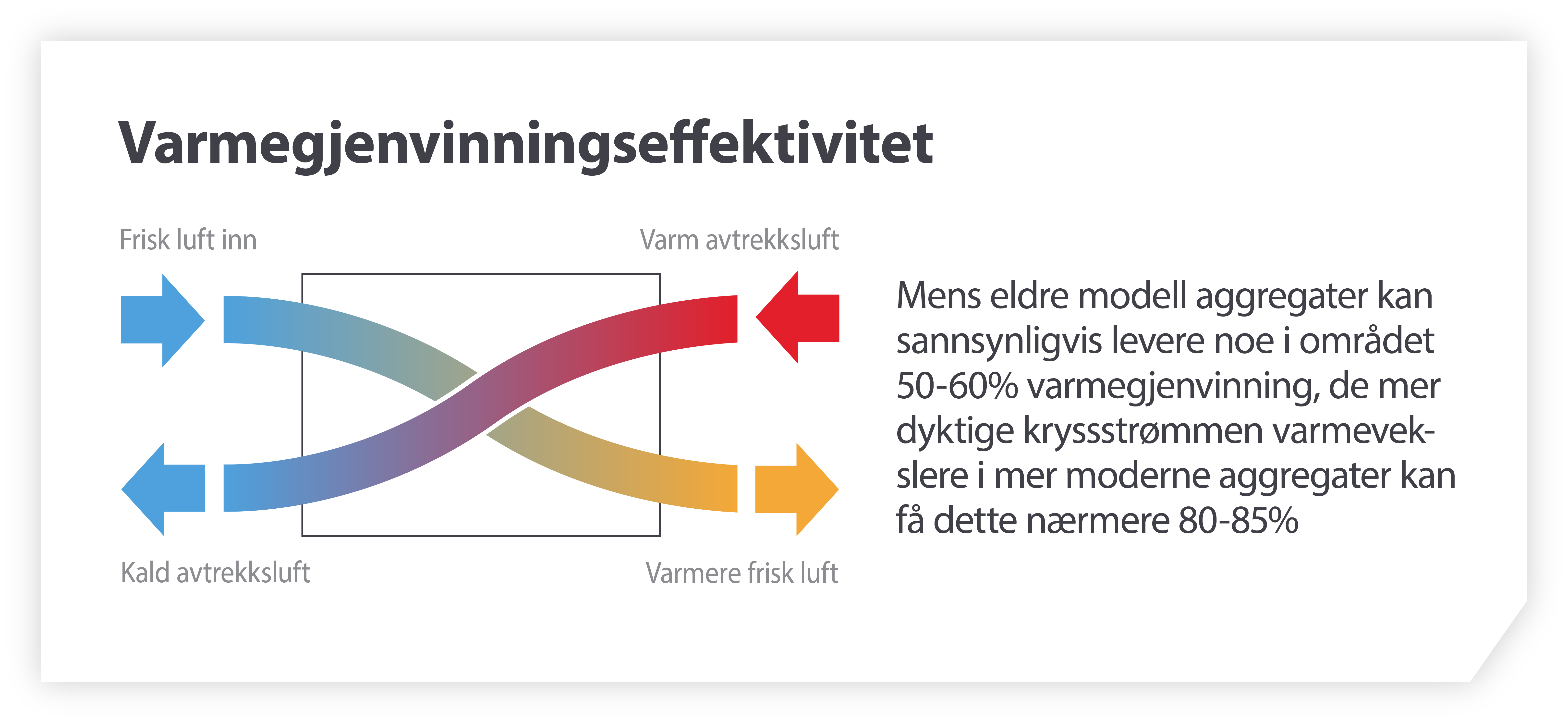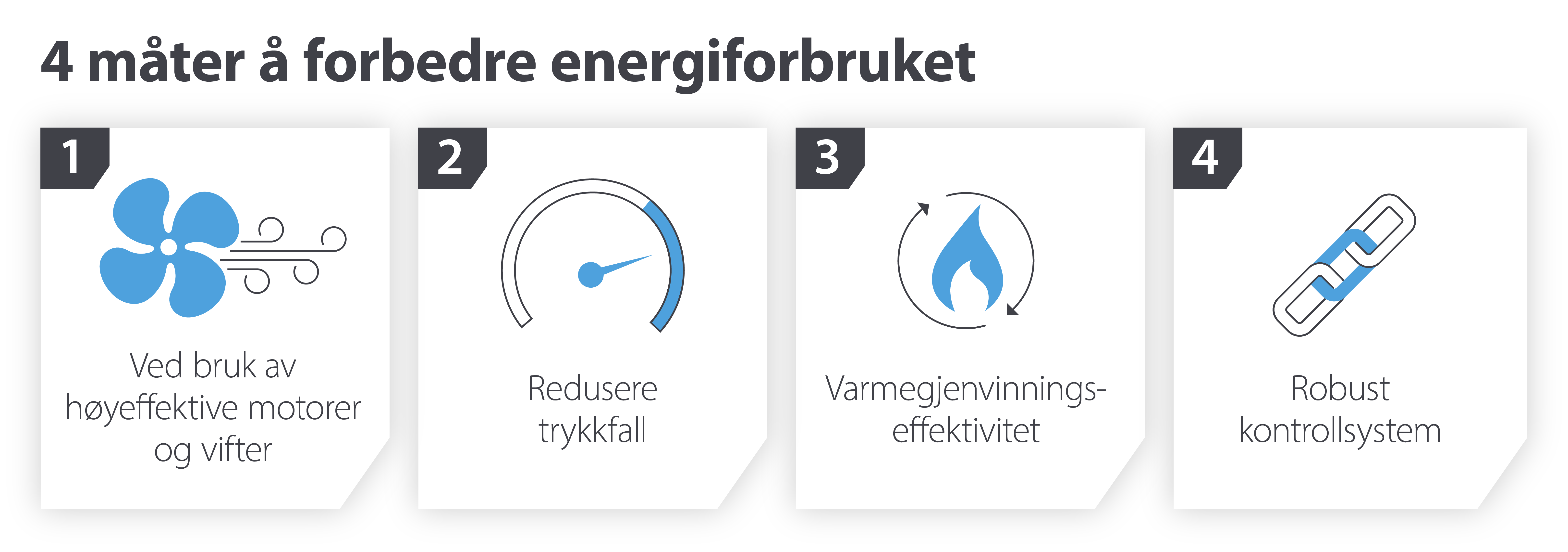 Bruk av mer effektive motorer og vifter i ventilasjonsaggregatet kan redusere driftskostnadene betraktelig, samtidig som ytelsen ikke reduseres.