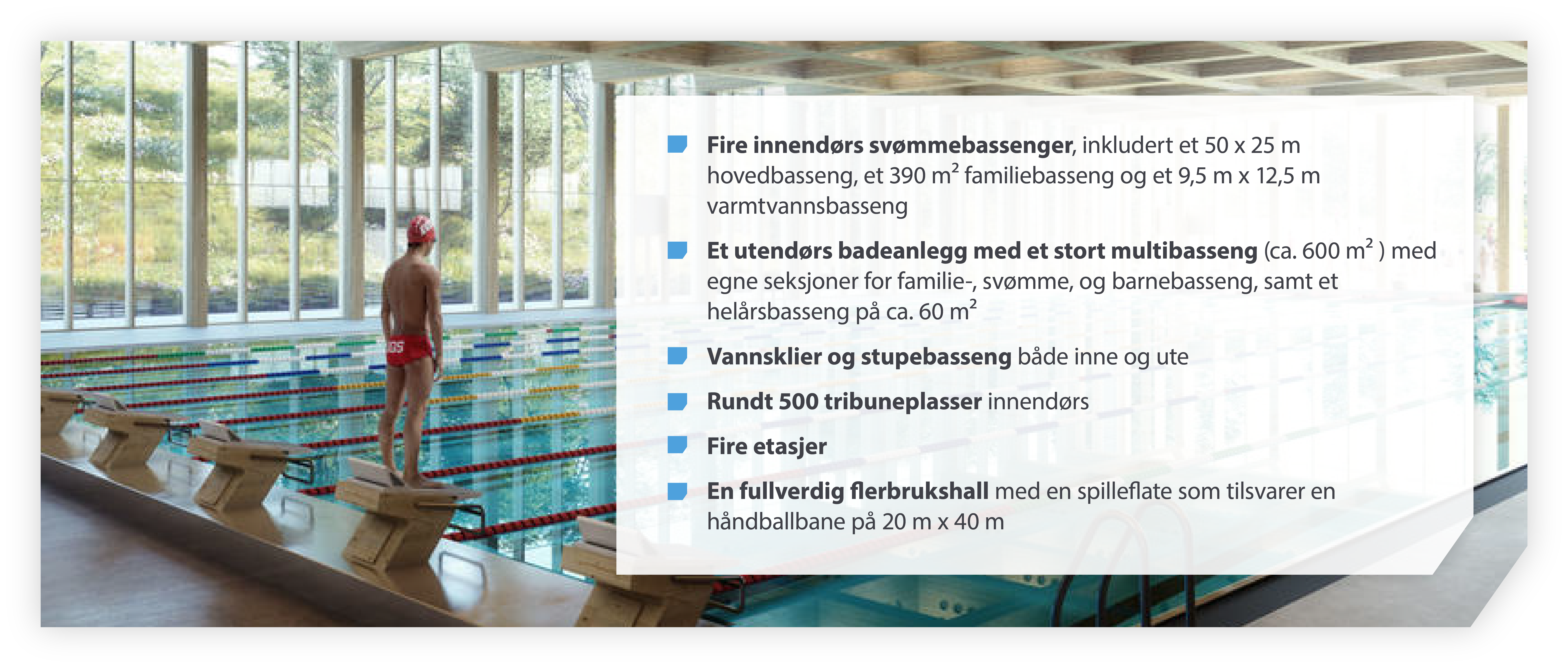 Totalt vil det nye svømmeanlegget bli på ca. 16 000 m².