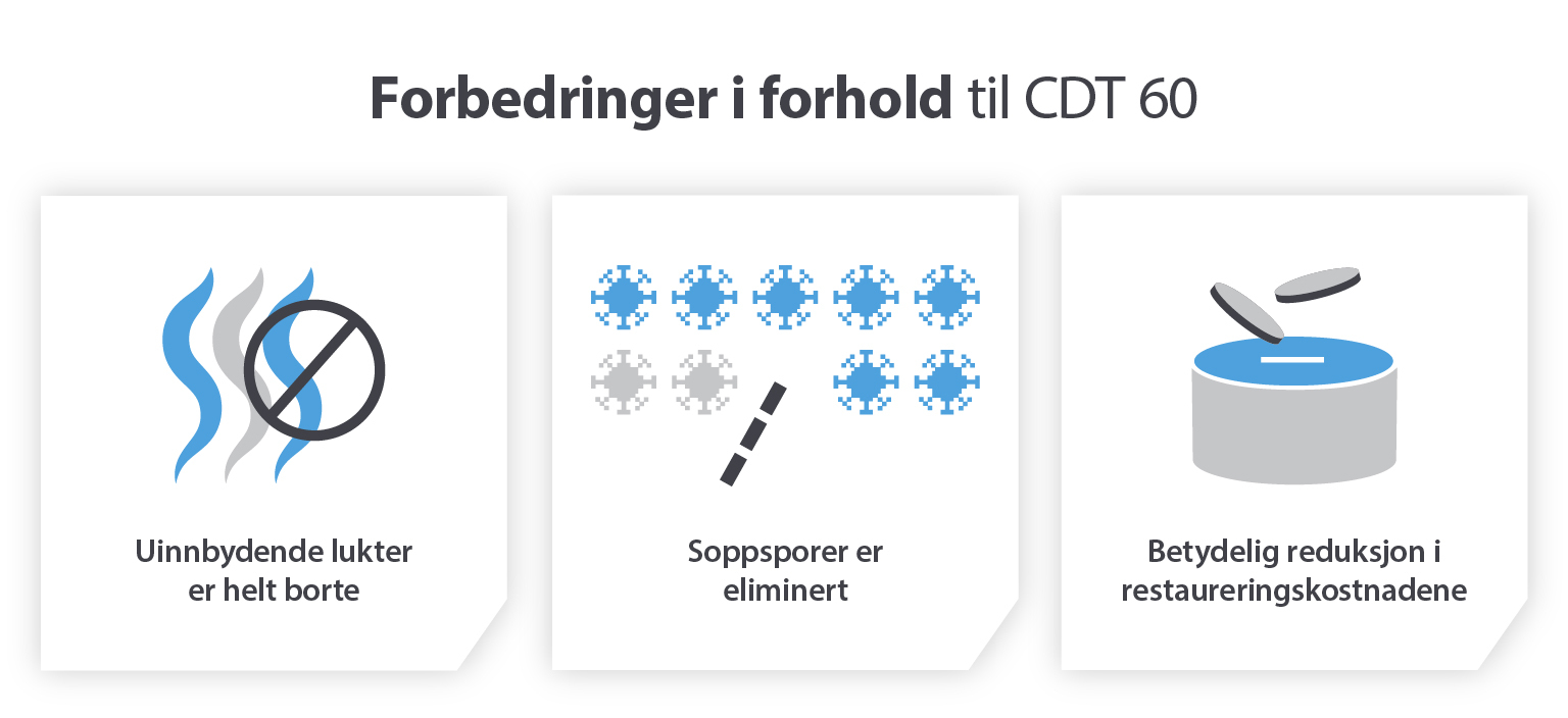 CDT 60-enheten er mye brukt til vannskadesanering og tørking av bygninger. Det er kostnadseffektivt, kraftig og energieffektivt. Den er svært enkel å sette opp og bruke (det tar bare Morten 15 minutter), og krever minimalt med kunnskap for å brukes i det daglige.