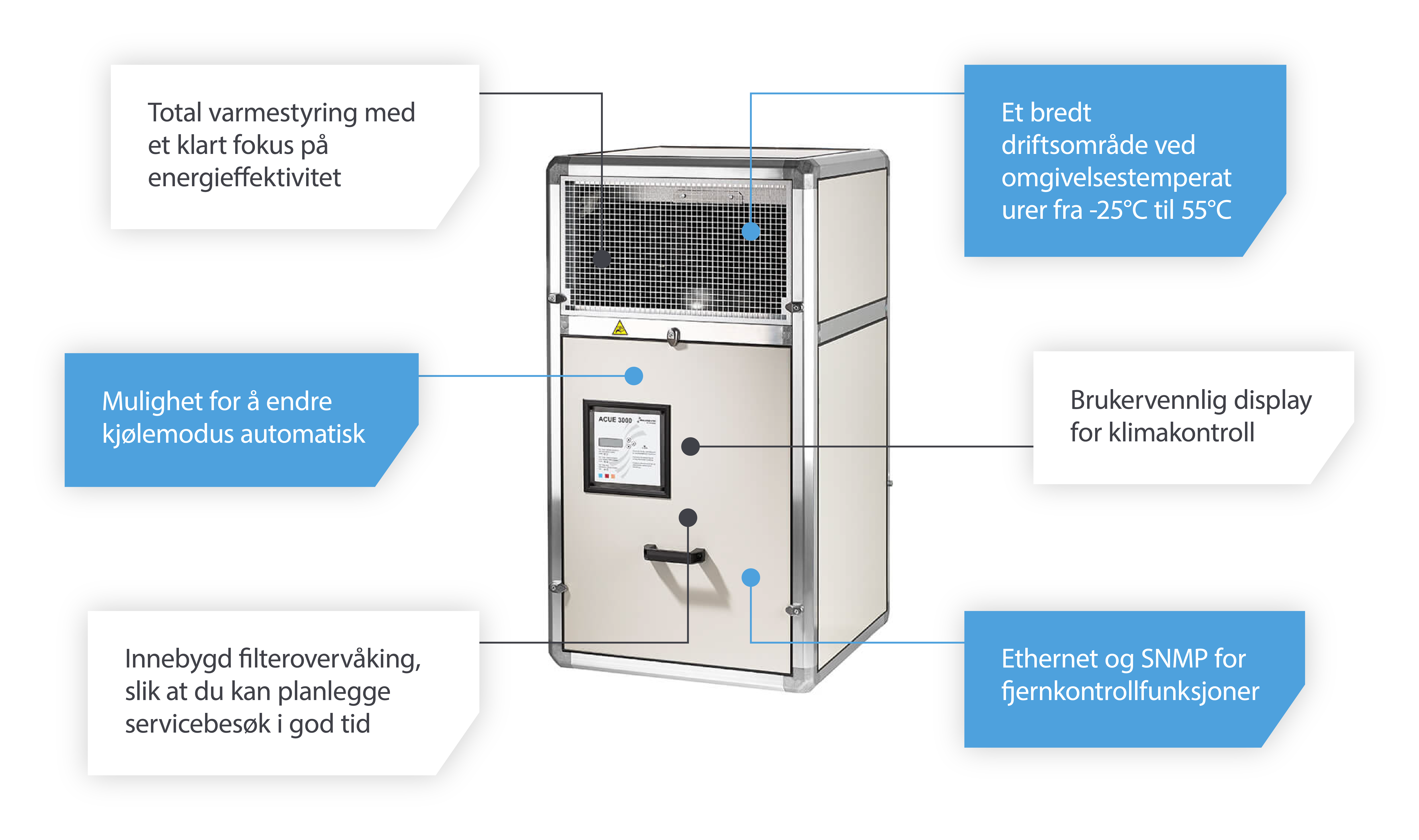 Overdreven varme er et av de mest utbredte problemene datasentre og telekom står overfor. Når temperaturen ikke holdes under kontroll, er det fare for at dette sensitive utstyret overopphetes og at problemene står i kø, noe som medfører store kostnader i form av reparasjoner, utskiftninger og nedetid.