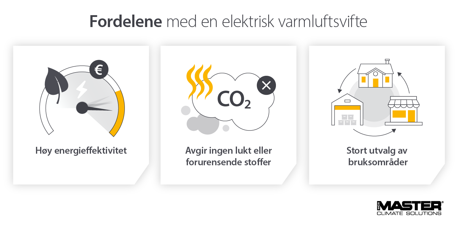 Ved hjelp av elektrisitet produserer disse varmluftsaggregatene ingen damp eller ubehagelig lukt, noe som gjør dem ideelle til å regulere inneklimaet i rom uten behov for kontinuerlig ventilasjon.