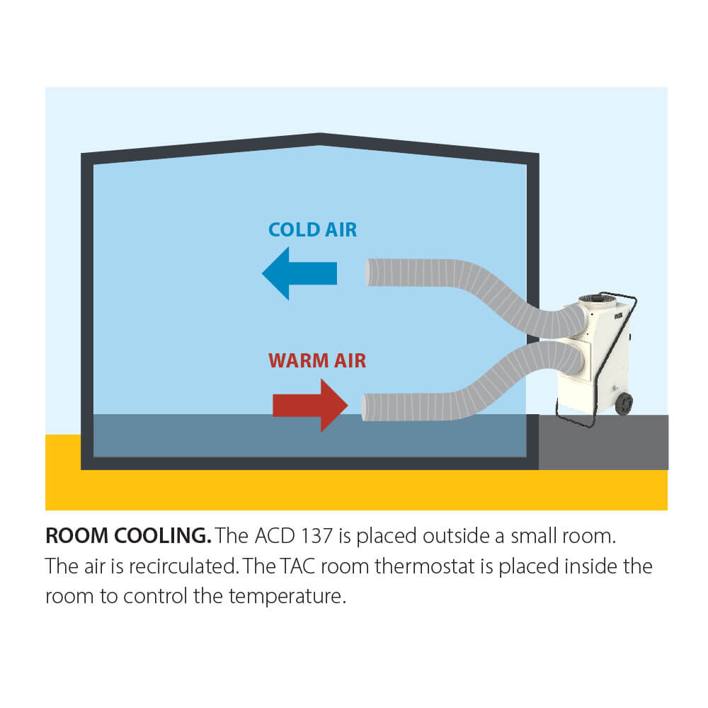An innovative new product that allows multiple usage of being an air-conditioner and a dehumidifier. This durable and portable unit is ideal for emergency and temporary cooling and drying solutions including tents, mobile hospitals, work spaces and retail premises.