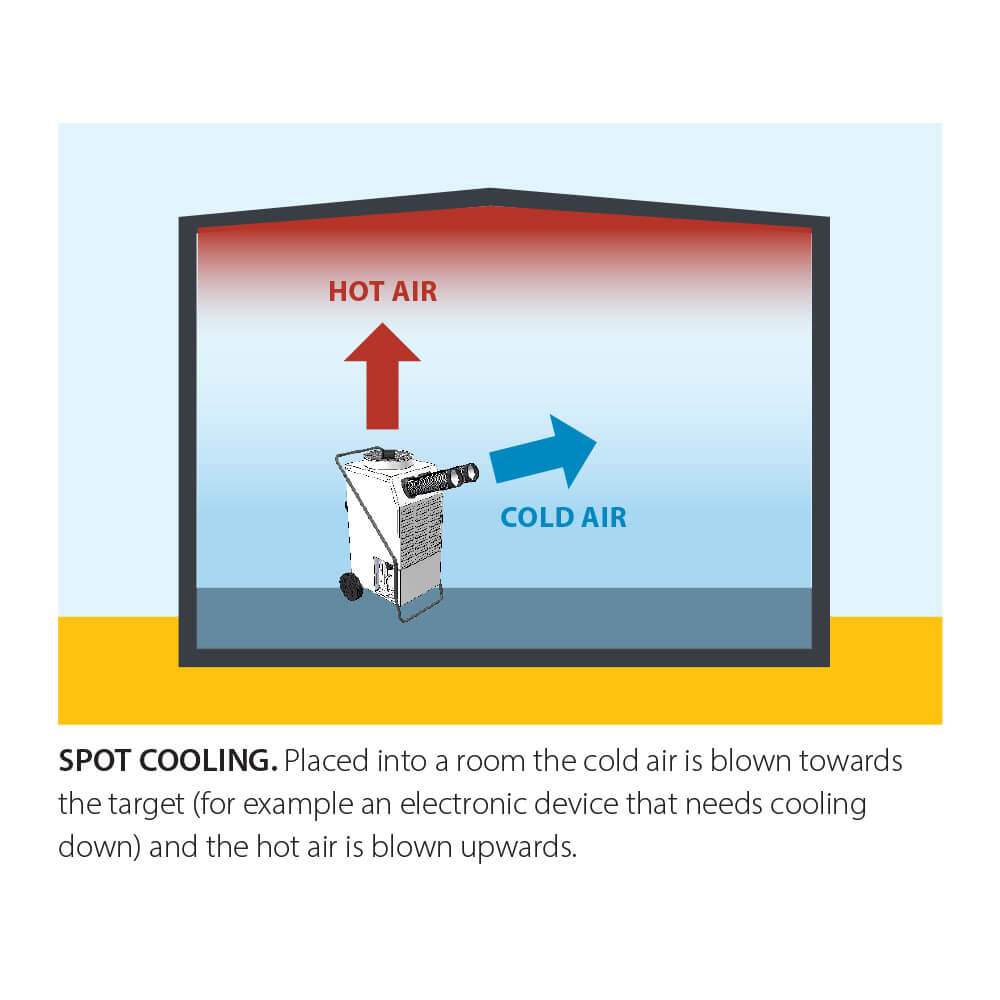 Portable spot air-conditioning for a wide range of applications like workshops, data centres, offices, retail