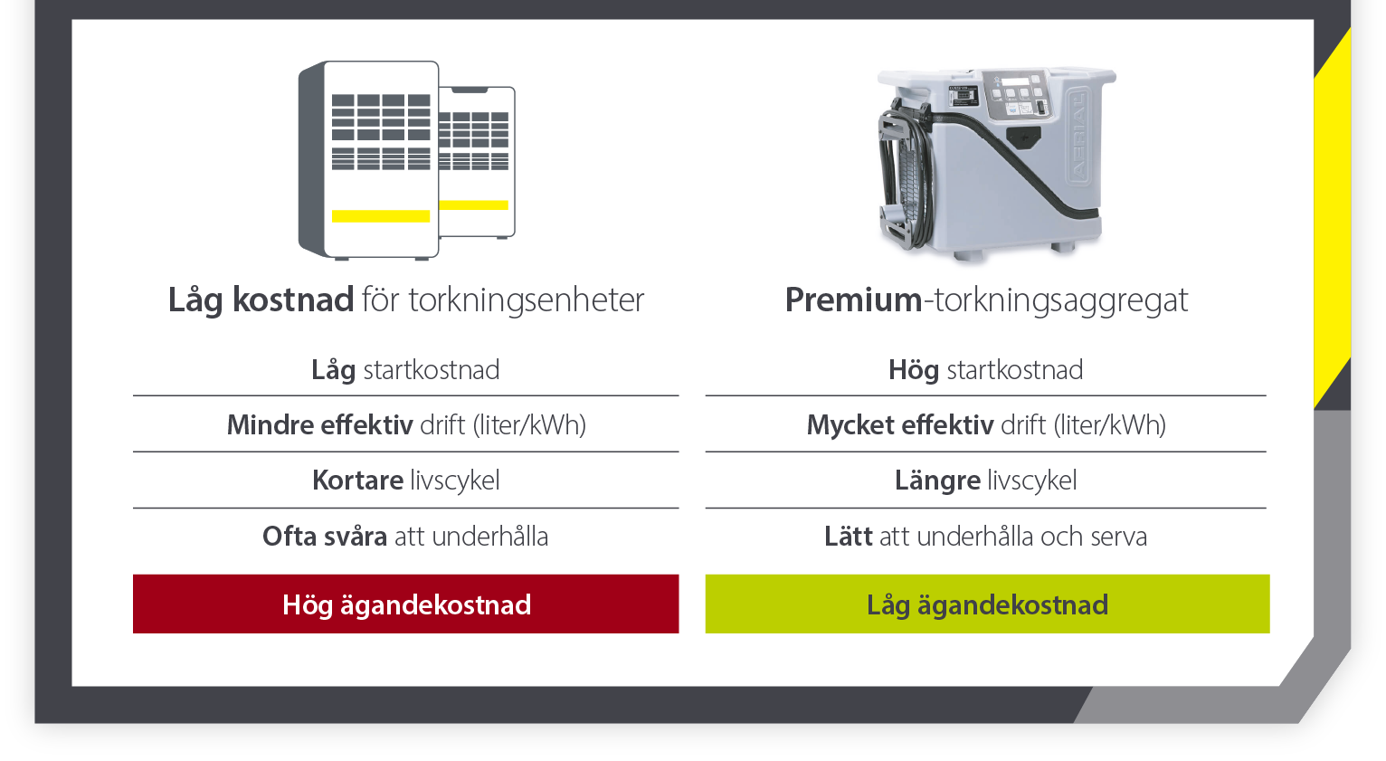 På samma sätt kan inköp av billiga torkaggregat av låg kvalitet ge kortsiktiga besparingar, men på lång sikt blir de dyrare i drift och underhåll och har kortare livslängd. Om du köper kvalitet från början kommer du att spara mer under de kommande månaderna och åren.