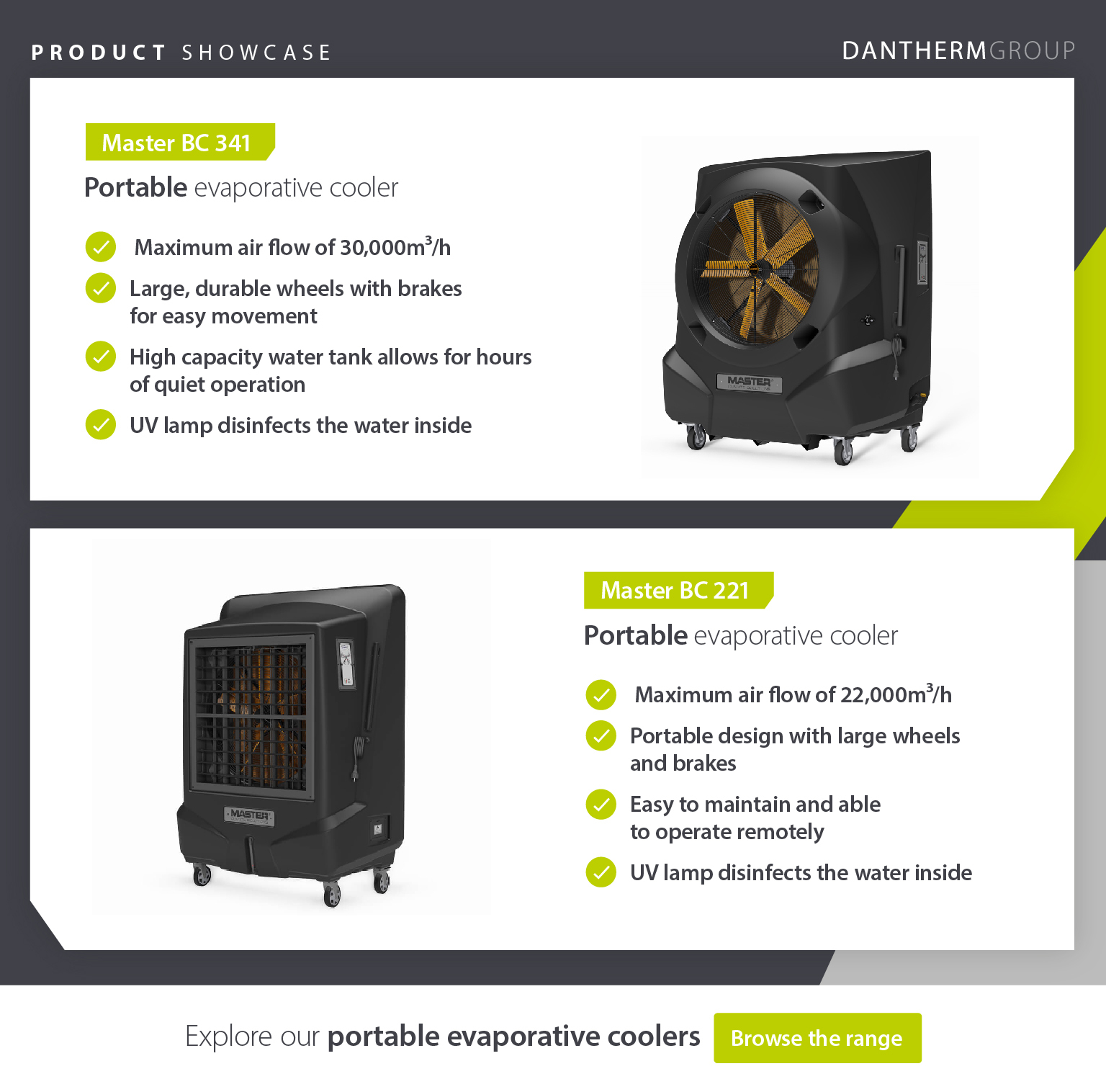Evaporativa kylare kan också effektivt styra temperaturer i stora utrymmen, oavsett om dörrar, fönster eller lastkajer är öppna eller stängda. Det innebär en stor skillnad jämfört med luftkonditionering, som är byggd för mindre och mer slutna utrymmen.