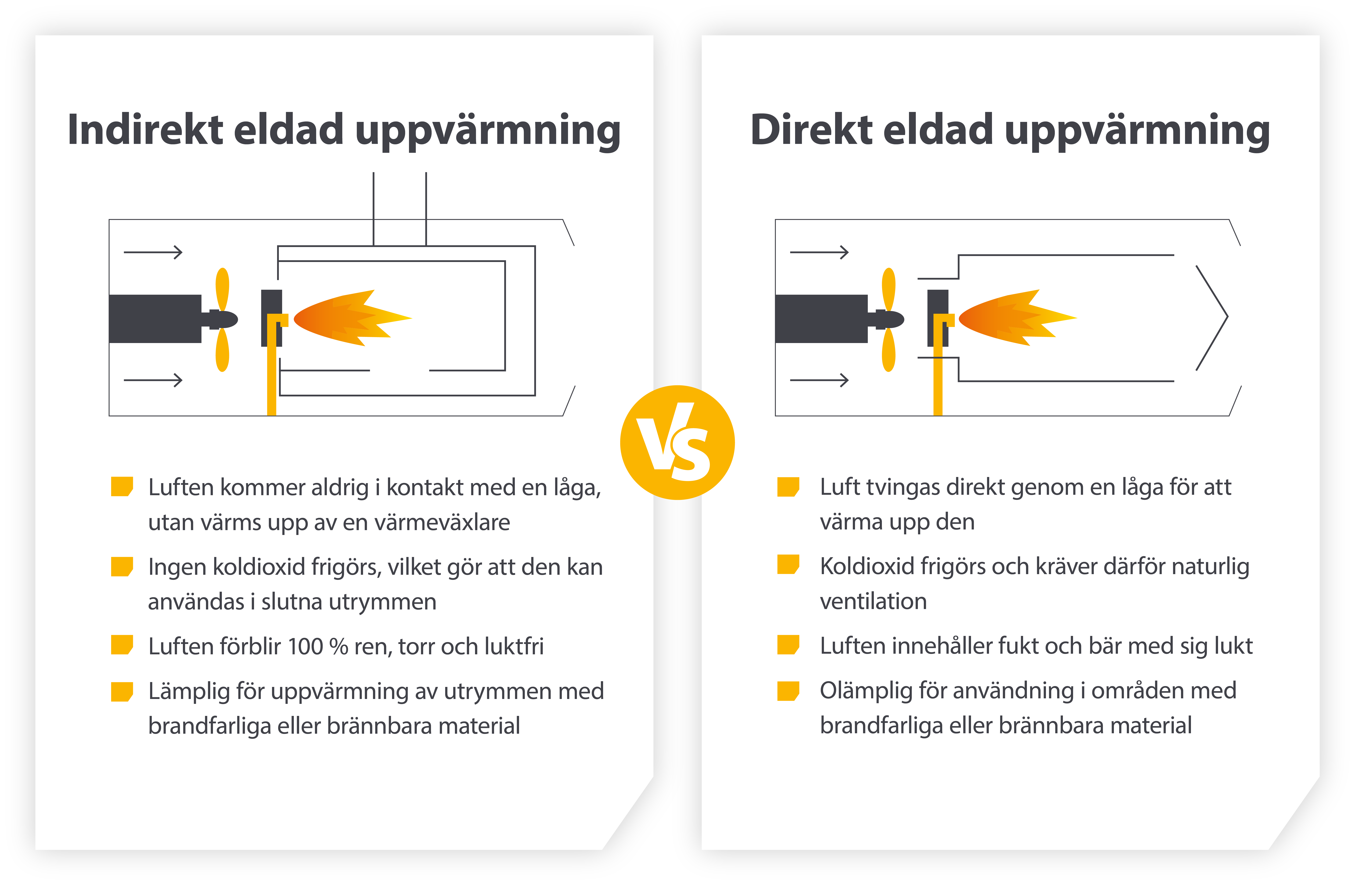 Det är därför Master BV-serien har indirekt eldade enheter. Av denna anledning kommer den varma luft som används för att värma upp dessa tillfälliga boenden aldrig i kontakt med en öppen låga. I stället används en värmeväxlare för att säkerställa att endast varm, ren luft kommer in i lokalerna, medan alla förbränningsprodukter släpps ut genom en extern skorsten.