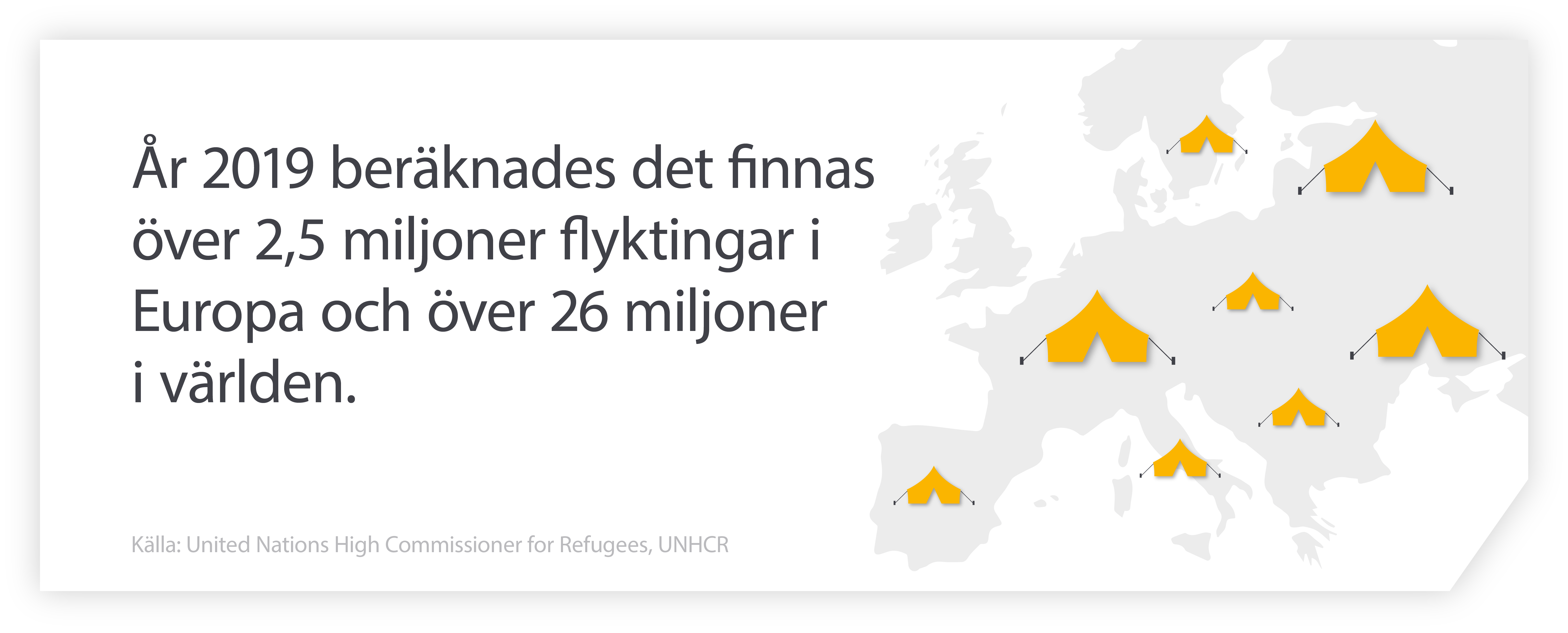 Enligt data från FN:s flyktingkommissionär (UNHCR) fanns det under 2019 över 2,5 miljoner flyktingar i Europa och över 26 miljoner i världen. Bara i Tyskland väntas omkring 800 000 asylsökande anlända innan året är över.