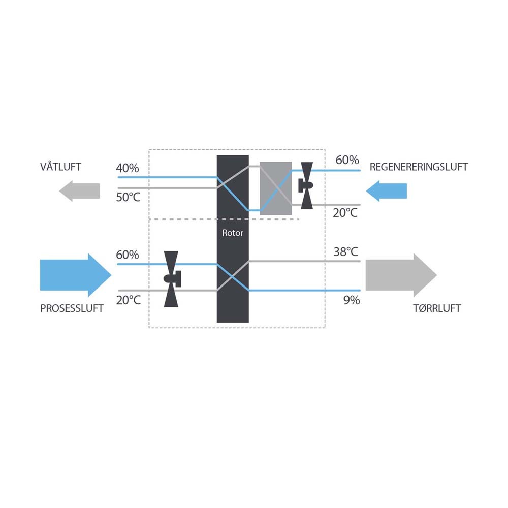 Large, powerful adsorption dehumidifiers with a wide range of air flow rates, insulated cabinets, internal energy-saving cleaning zone and a range of optional features.