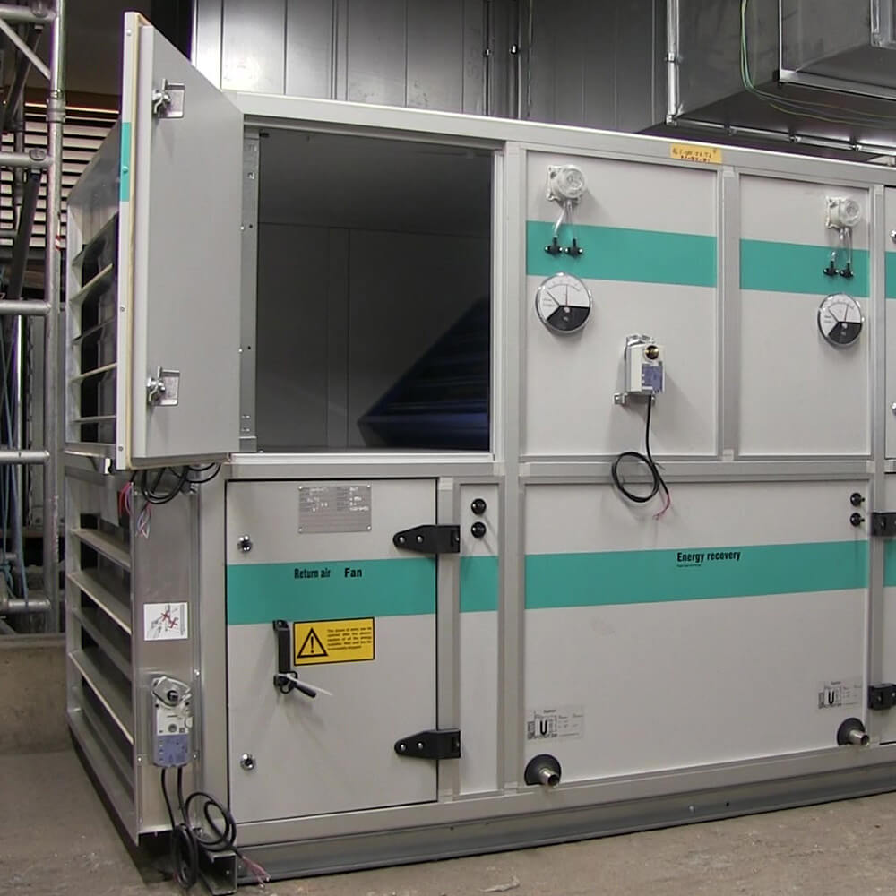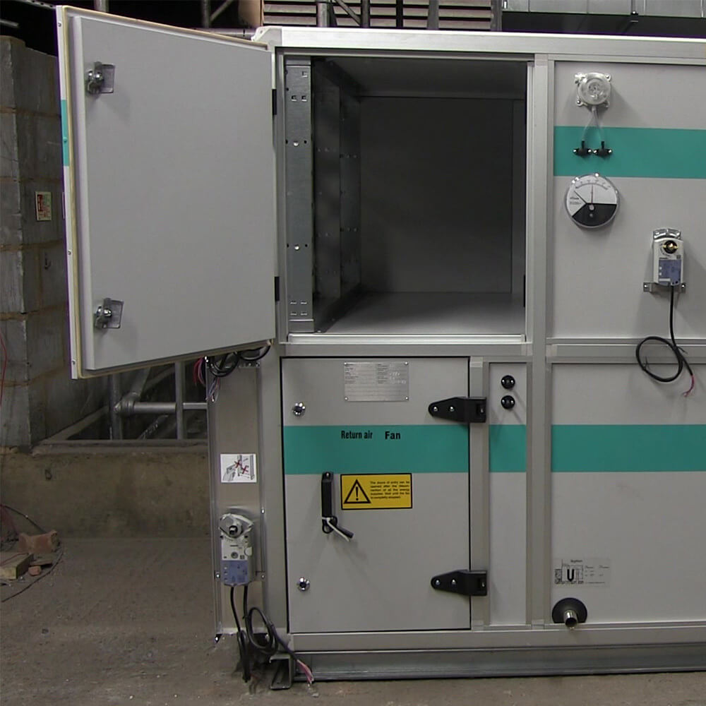 AHUs are type tested to EN1886 standards: Casing Air Leakage Class L1, Casing Strength Class D1, Casing Thermal Insulation Class T3, Thermal Bridging Factor TB3, Filter Assembly Leakage F9.